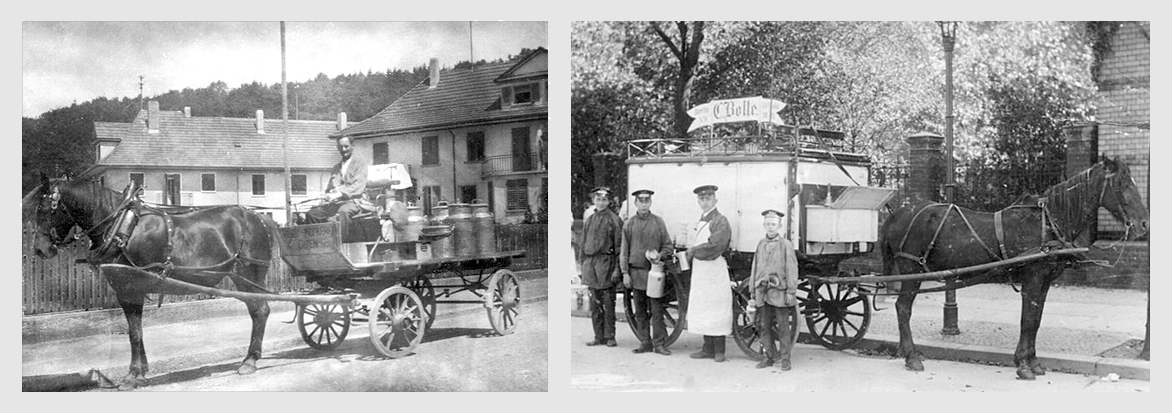 Der Milchmann auf Tour (Quellenangabe siehe unten auf der Seite: Bild 1 * / Bild 2 **)