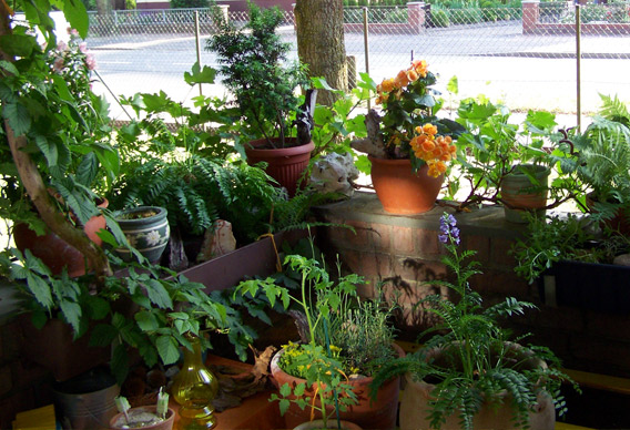 Zier- und Nutzpflanzengemisch auf dem Balkon