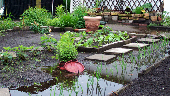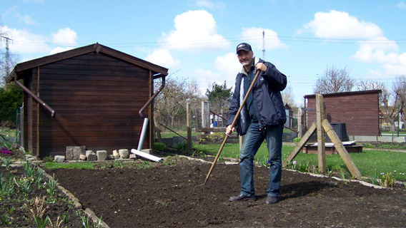 Wenn ein Garten den Besitzer wechselt, dann wird dieser in der Regel nach den eigenen Vorstellungen des Übernehmenden umgestaltet. Neue Wege und Beete entstehen, viele Pflanzen werden umgesetzt bzw. im Gartenfachhandel erworben. Meine Orientierung liegt hauptsächlich in der Gestaltung eines Kneipp-, Kloster-, Apotheker- oder einfach Kräuter- und Aromagartens. Dies erfordert selbstredend viel Geduld und Aktivität. Erfahrungen müssen auch erst gesammelt werden. Das Jahr 2013 ist derweil nicht gerade vorteilhaft für einen Neugärtner. Die lange Kälteperiode verhinderte vorerst die Aussaat von Gemüse wie Zierpflanzen und nun ertrinkt der Garten durch übermäßigen Regen. Indes muss man mit solchen Widrigkeiten rechnen. Zum Glück bin ich kein Bauer, der gewerblich stetig auf das Wetter angewiesen ist. Ein gewisses Verständnis für diesen Berufsstand entwickelt sich allerdings bei mir. Mal sehen, wie es weiter geht mit meiner Minioase in diesem wie im nächsten Jahr.