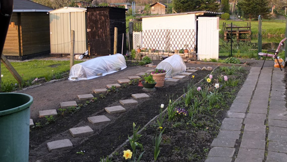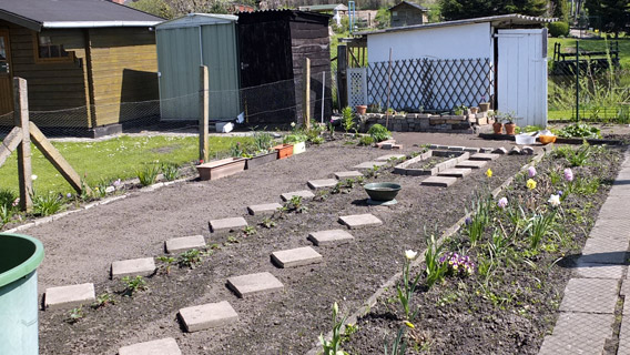 Die Vorarbeiten sind Mitte Mai erledigt und bieten einen angenehmen Blick auf den Garten