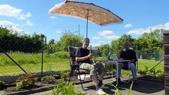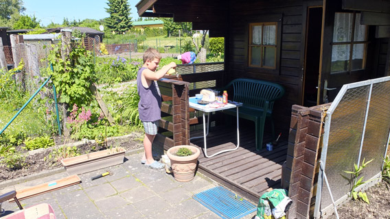 mit tatkräftiger Unterstützung eines jungen Gartennachbarn