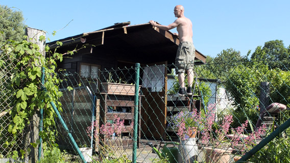 Erste Aufräumarbeiten in der Laube & auf der Terasse nach Übernahme am 20.04. 2013